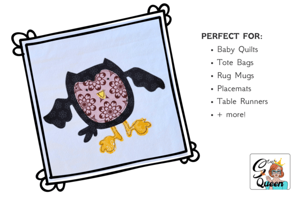Make this cute hand drawn little owl to adorn your baby quilt, tote bags, placemats, mug rugs, or any sewing project you’re ready for. This applique is for an 8” x 8” block of fabric, but could be used by itself on any sewing project.