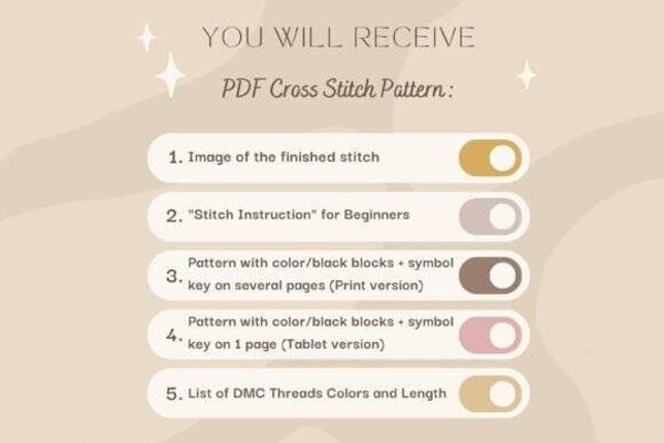 • 1 PDF Cross Stitch Pattern;