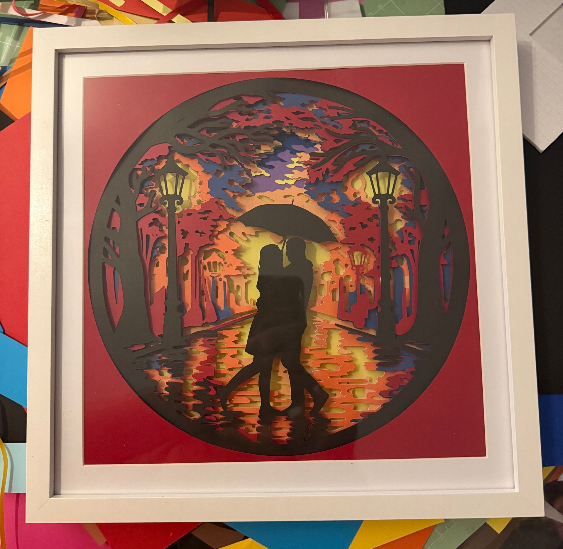 Couple in the rain 3d Shadow Box with Lights